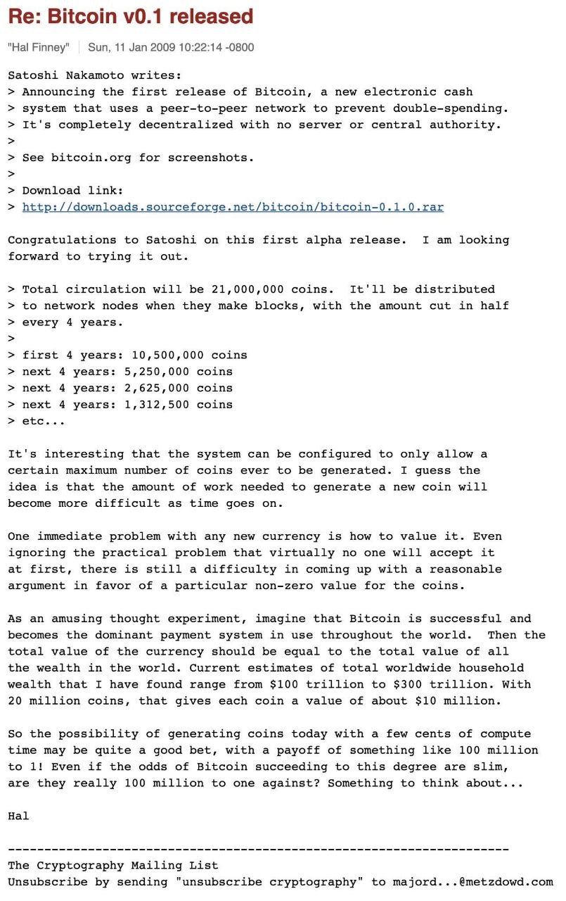 Тогда же Хэл Финни писал о том, что цена 1 BTC вполне может достичь 10 миллионов долларов.