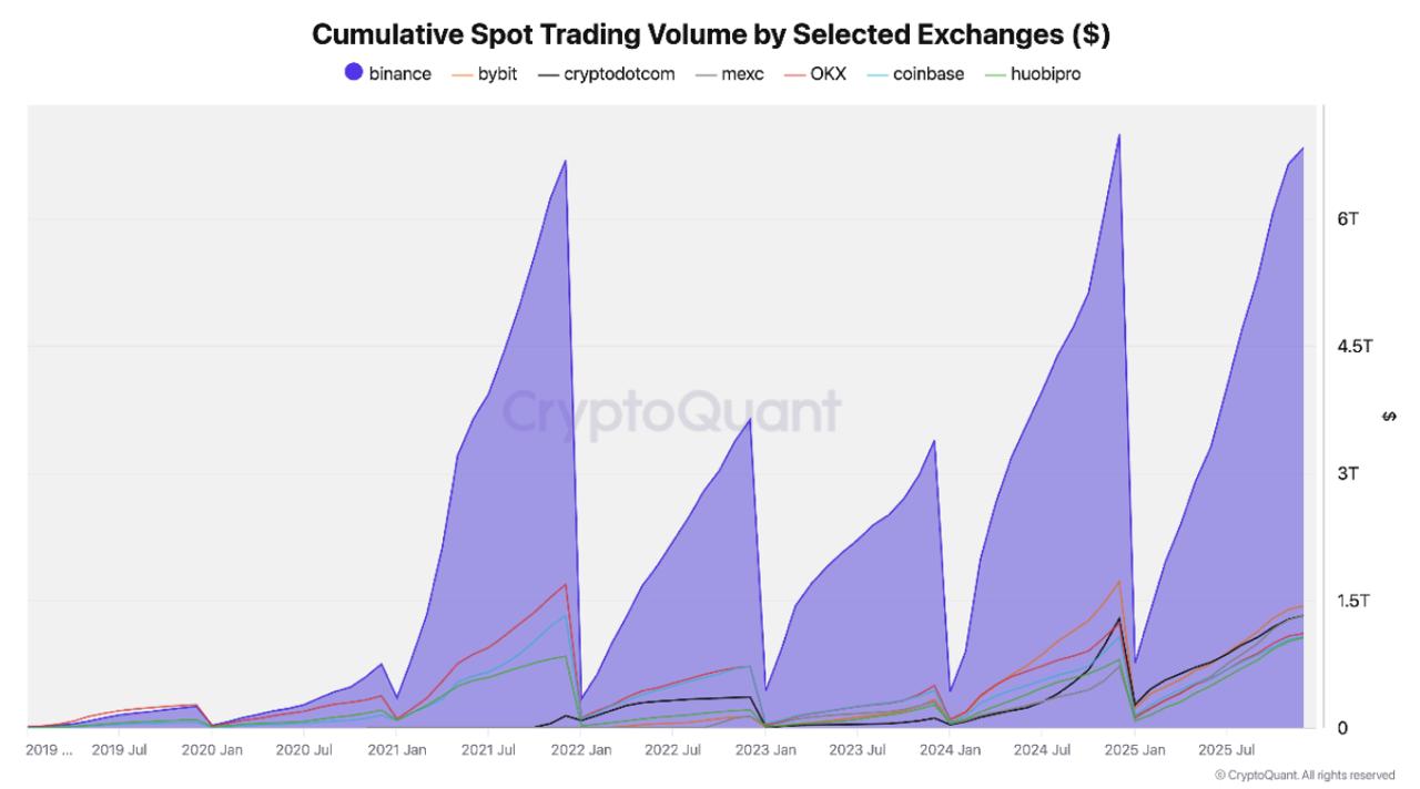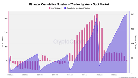 Рыночная динамика Binance оказывает мощное влияние на всю крипто-отрасль, стимулируя: сильные рыночные показатели привлекают пользователей, пользователи увеличивают объемы и приток средств, а растущая эффективность усиливает ликвидность всей Bitcoin-индустрии.