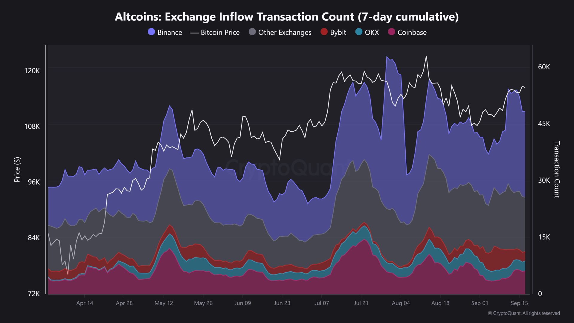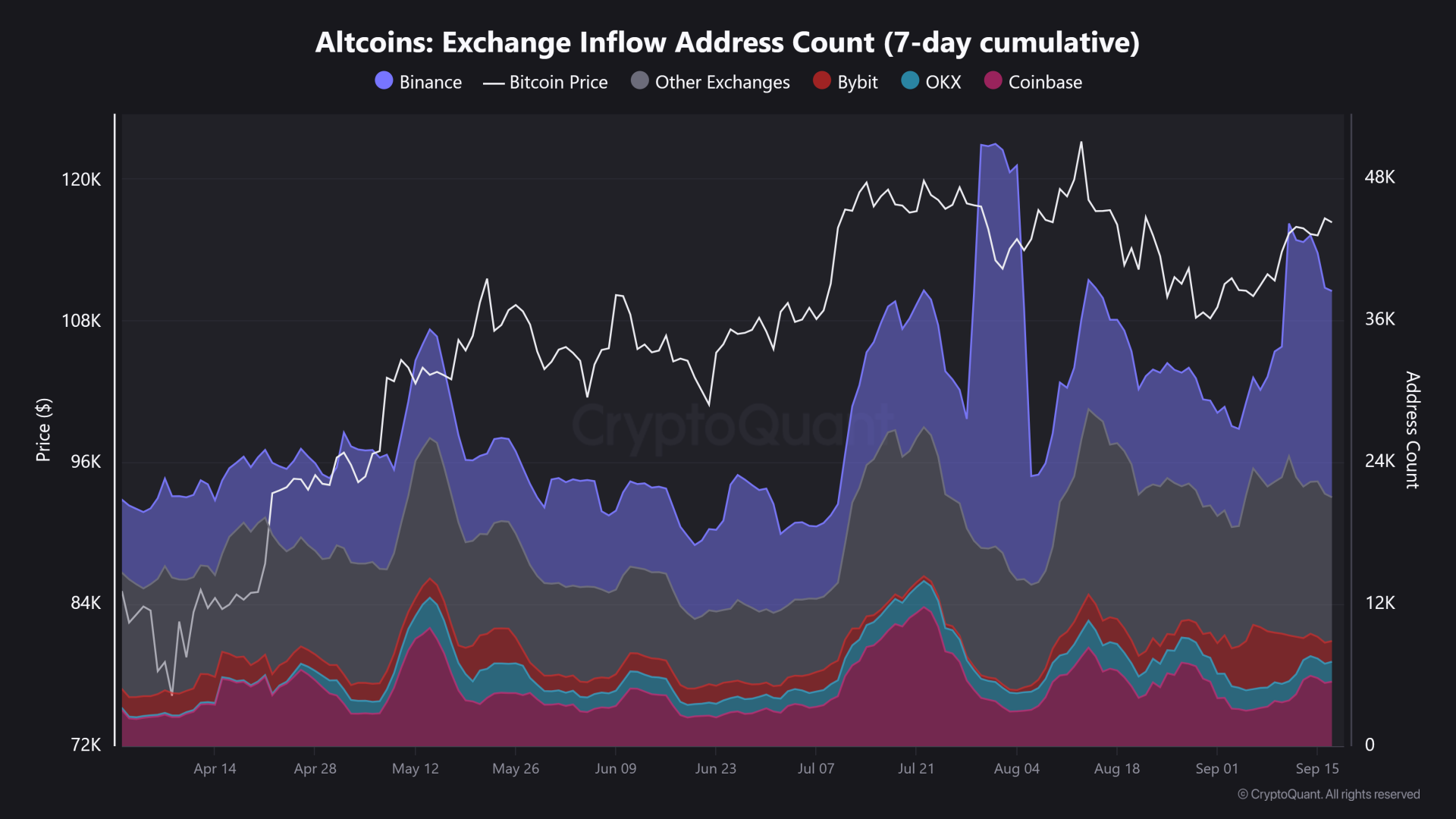 В то же время число соответствующих адресов за тот же период выросло до 42 000 по сравнению с 23 000 в начале сентября, при этом на Binance приходится 19 000, а на Coinbase — 6000.