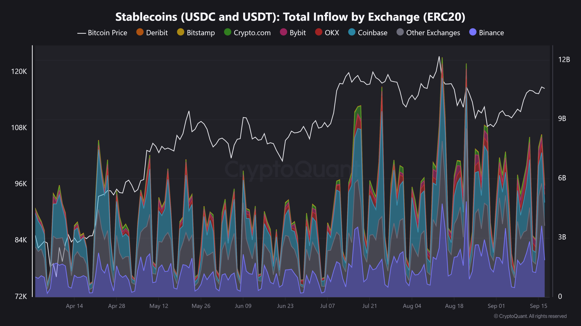 Binance — ключевая биржа, на которую инвесторы ориентировались в преддверии заседания ФРС США. Именно Binance сохраняет совершенное лидерство по притоку стейблкоинов и альткоинов.