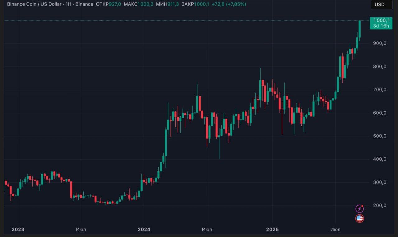 Также неудивительно, что нативный токен BNB возглавляет топ CoinMarketCap по динамике роста — буквально сегодня эта криптовалюта впервые в истории преодолела уровень в $1000.