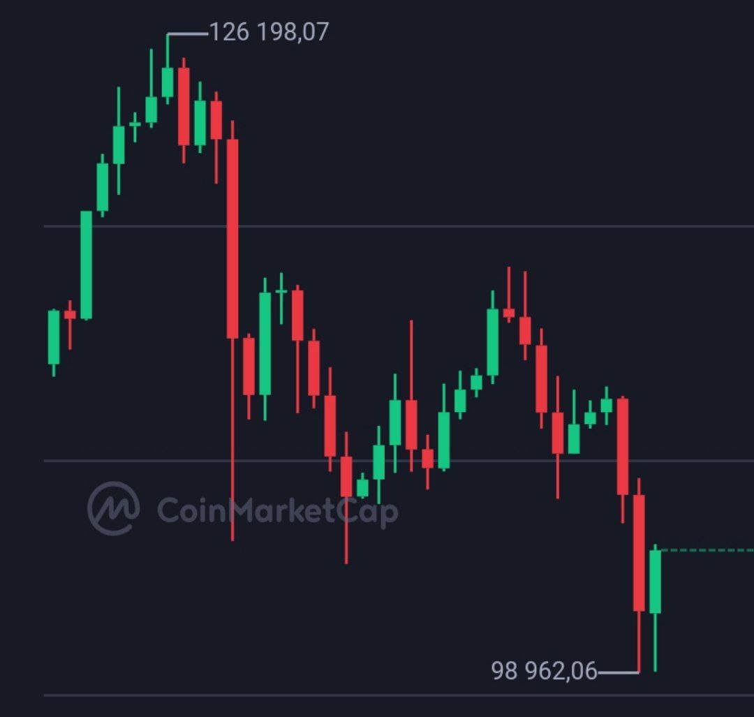 Биткоин «обвалился» ниже $100 000 впервые за 4 месяца — в моменте ведущая криптовалюта достигла локального дна в зоне $99 000.