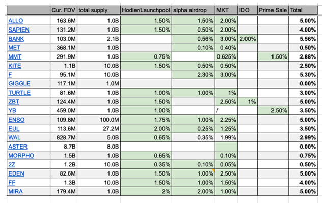 В то же время общие сборы редко превышают 5% от общего предложения проекта, а высококачественные проекты с крупным FDV в большинстве случаев выделяют значительно меньше 1%. Проекты среднего уровня, как правило, выделяют больше средств, в основном на вознаграждение пользователей и поддержку ликвидности. Такой многоуровневый подход снижает риск манипулирования рынком, обеспечивая при этом более здоровую среду запуска.