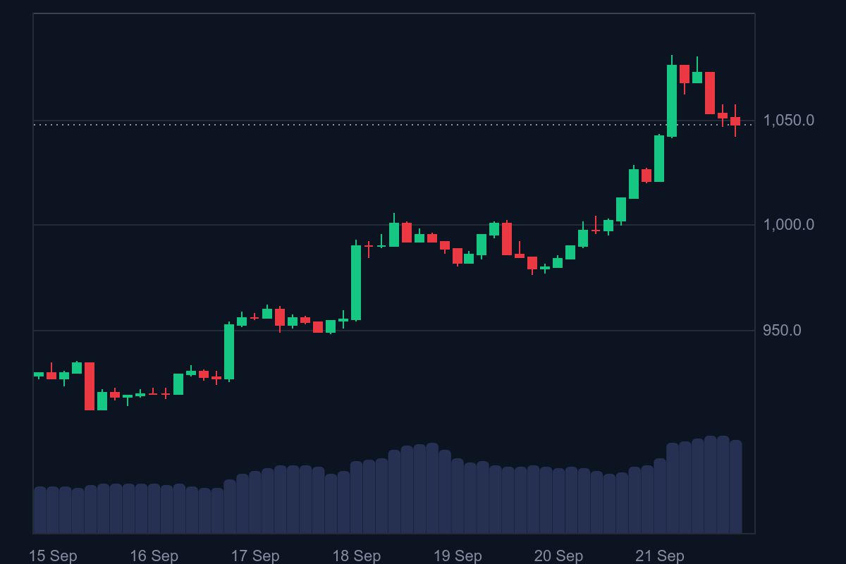 В то же время нативный токен BNB впервые в истории преодолел уровень $1000.