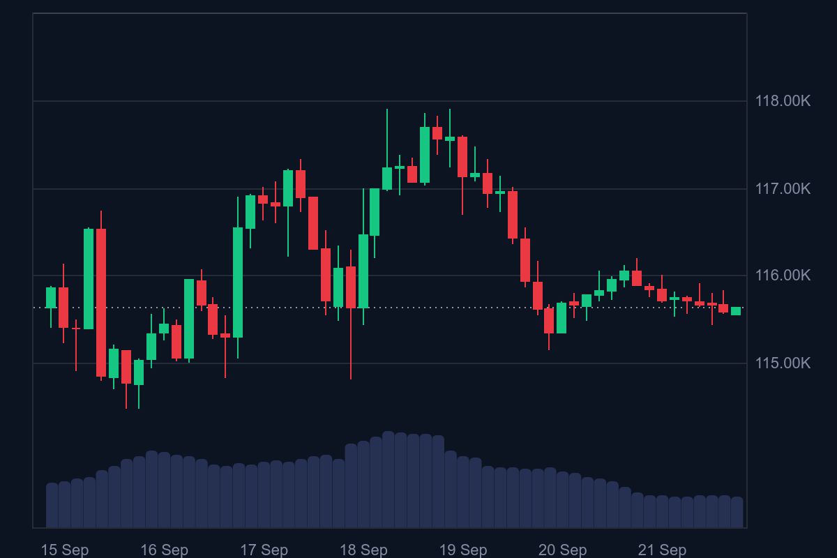 Биткоин на этой неделе умеренно рос — ведущая криптовалюта в моменте достигла $117 000, а к выходным стабильно торгуется выше $115 000 на фоне новостей о начале политики снижения процентной ставки в США (об этом поговорим ниже в дайджесте).