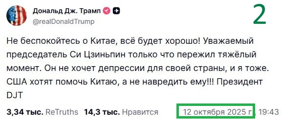 Напомним, катализатором падения на прошлой неделе стали слова американского президента Дональда Трампа о введении 100% торговых пошлин для Китая. Теперь же Трамп заявил, что о конфликте США с Китаем не стоит сильно переживать — запланирована встреча с Си Цзиньпином, отношения между странами налаживаются, а высокие пошлины не будут сохраняться долго.