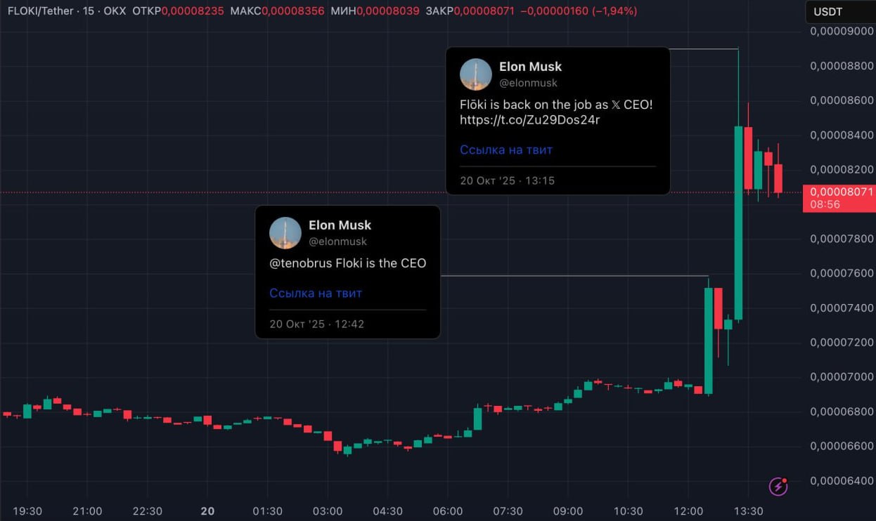 Сам Маск никак не прокомментировал происходящее, однако впервые за долгое время “запампил» мемкоин FLOKI, опубликовав в своем Twitter ИИ-видео с «новым CEO X по кличке Floki» (видео в нашем телеграм канале).