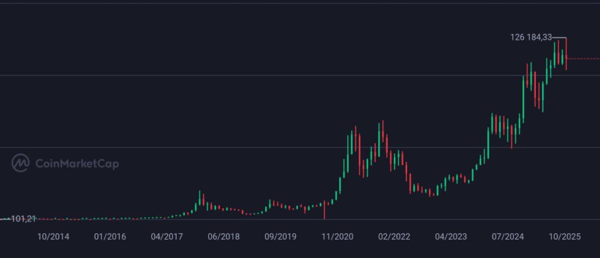 К слову, биткоин торгуется выше $100 000 всего 2,7% своей жизни.