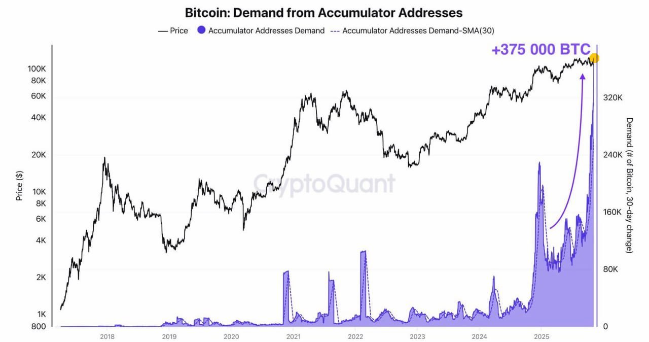 В то же время, по данным CryptoQuant, спрос покупателей на биткоин достиг исторического максимума — за месяц куплены рекордные 350 000 BTC.