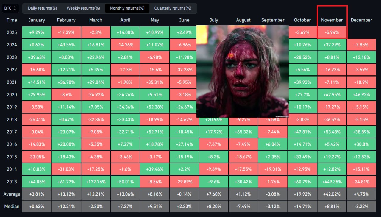 Ноябрь 2025 года стартовал пугающей нисходящей коррекцией для криптовалютного рынка, несмотря на то, что исторически этот месяц является самым прибыльным в истории биткоина.