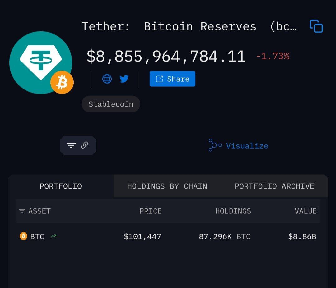 На этой неделе Strategy буднично купили себе еще 397 BTC и теперь холдят 641 205 BTC на $70 млрд, а Tether приобрели еще 961 BTC на $100 млн и теперь холдят 87 296 BTC на $9 млрд.