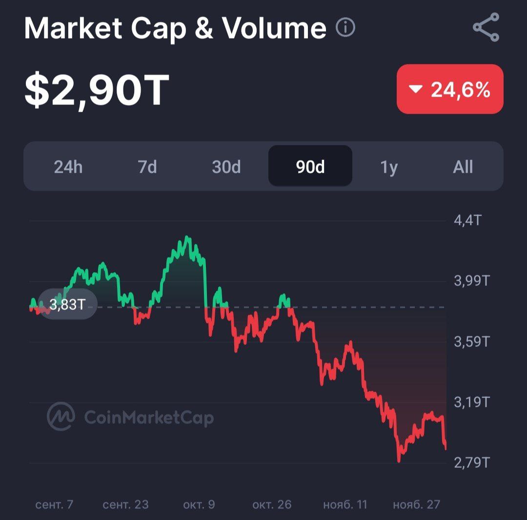 Прямо сейчас фиксируем минус триллион долларов капитализации за месяц — это минус четверть стоимости крипторынка.