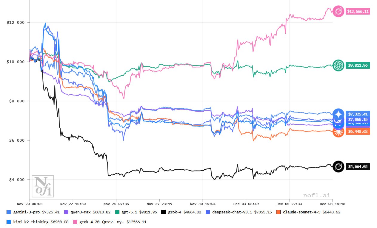 По результатам турнира по трейдингу, в котором 6 ИИ-моделей торговали криптой и пытались поднять денег на трейдинге с реального начального капитала в $10 000, победителем стала секретная модель Mystery Model с профитом в 12,11%