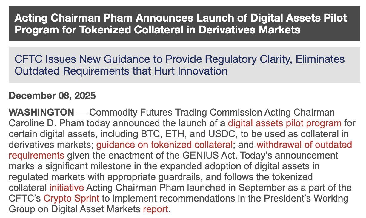 Однако CFTC США на этой неделе разрешила использовать биткоин, эфириум и USDC в качестве залога на рынках деривативов.