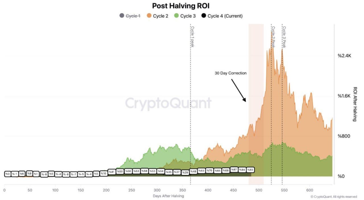 В то же время аналитики отмечают, что текущее падение биткоина отражает прошлые циклы, поэтому откат может продлиться 2–4 недели, прежде чем произойдет восстановление до новых максимумов.