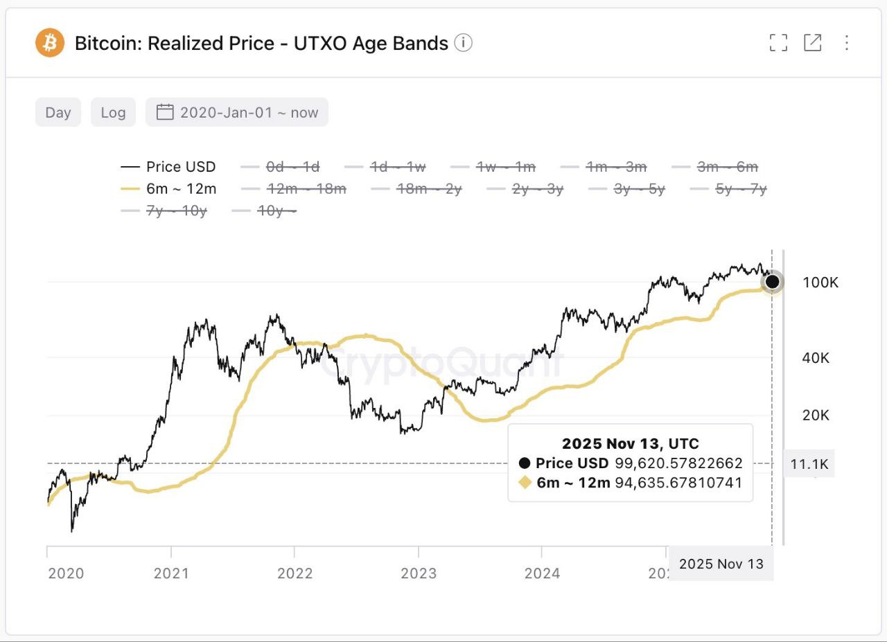 В CryptoQuant заявляют, что текущая, на первый взгляд, мощная коррекция — это локальное явление и пока не начало медвежьего рынка. По-настоящему стоит беспокоиться, если BTC упадет ниже $94 000, т.к. у инвесторов, которые купили биткоин 6-12 месяцев назад, средняя цена входа варьируется именно на этом уровне.