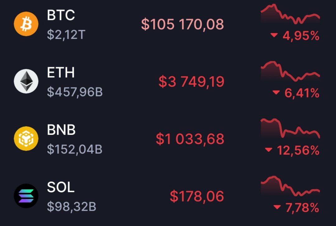 Обвал на крипторынке: биткоин ниже $105 000