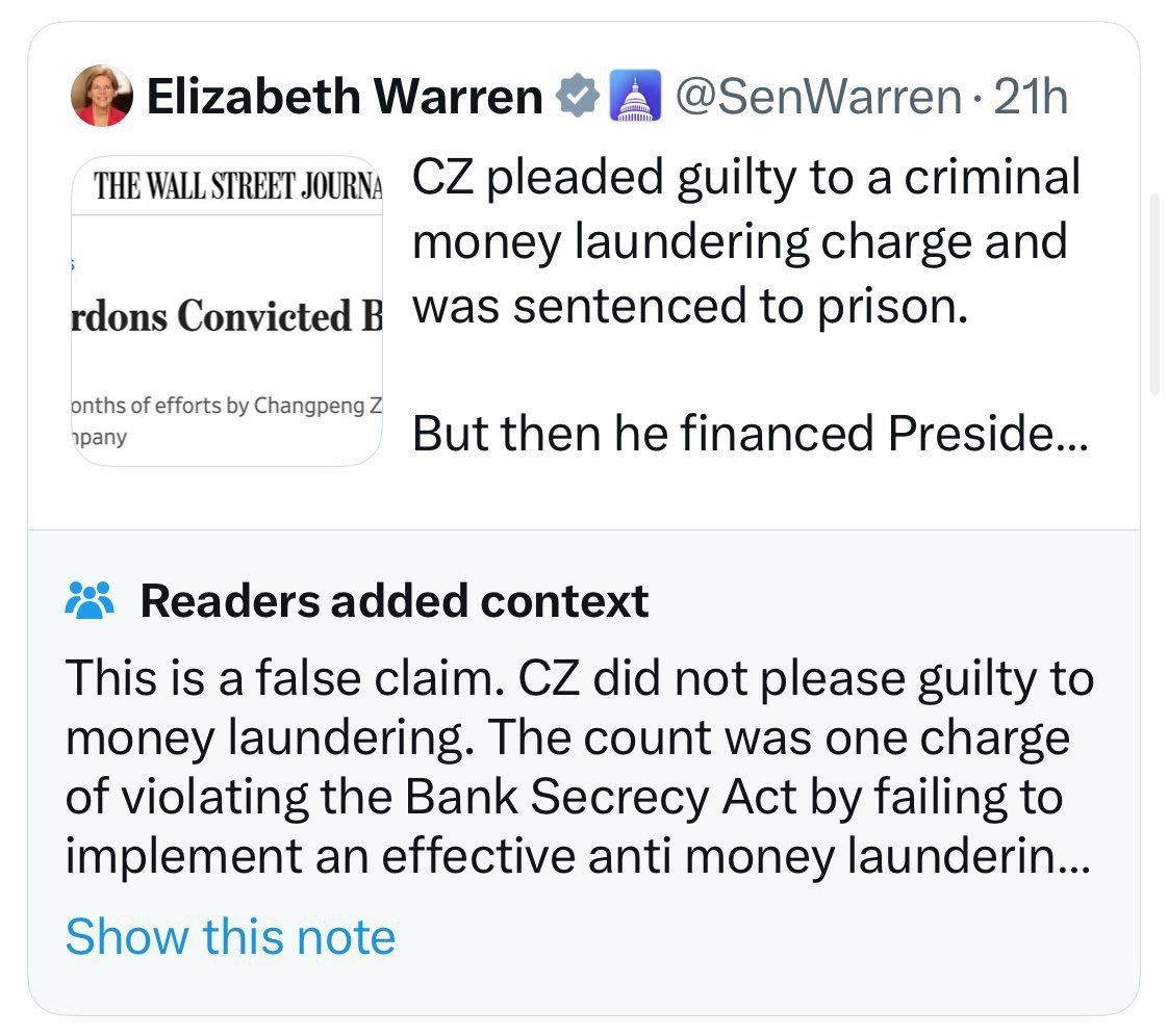 В то же время демократы уже успели обвинить Трампа в получении взятки за помилование основателя Binance — в частности, Элизабет Уоррен заявила, что помилование стоило $2 млрд в стейблкоинах USD1, однако в X пост был обжалован пользователями за клевету.