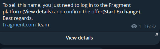 А затем нам пришло сообщение от якобы бота верификации запланированной операции по передаче юзернейма за 5000 TON. Много текста и «официальщины» для отвода глаз с кнопкой внизу:
