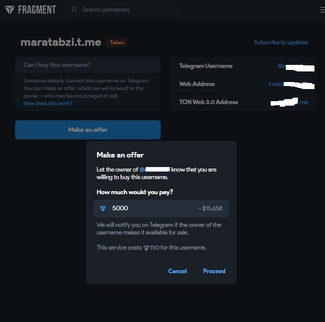 Сначала мы сказали, что наш юзернейм не продается, но скамер настаивал, что ему нужно именно это имя, для него это важно, и он готов заплатить хорошую сумму в TON в рамках этой сделки — 5000 TON (по текущему курсу это более $15 000). Даже заведомо зная о том, что на другом конце находится мошенник, такая цифра, признаемся, радовала глаз — что уж говорить о новичках.