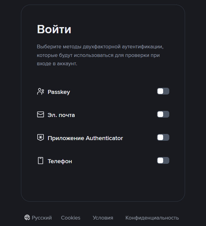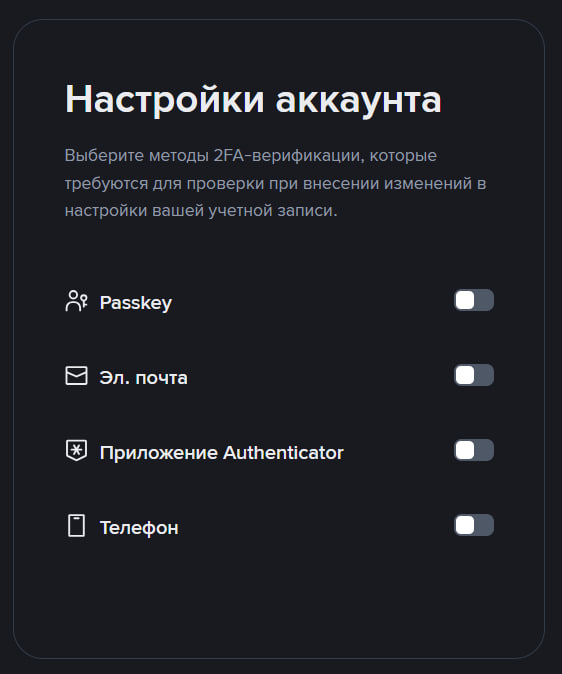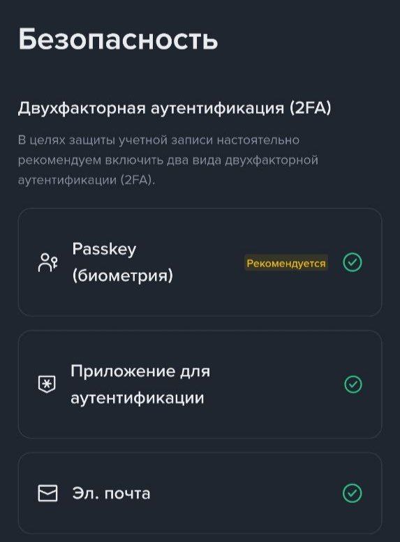 Объективно безопаснее всего включить совершенно все методы, но это определенно будет создавать некие неудобства при совершении операций, поэтому каждый может выбрать несколько наиболее оптимальных инструментов. В этом вся прелесть. Допустим, очень неплох «Passkey» вкупе с приложением двухфакторной аутентификации или sms-кодами.