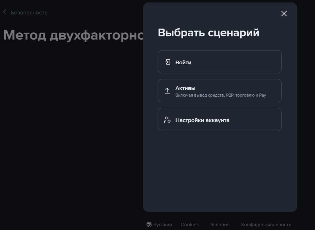 И непосредственно перейти к разделам, безопасности которых требуют индивидуальные условия — это может быть глобальная настройка аккаунта, авторизация, выводы, торговля, оплата и т.д.